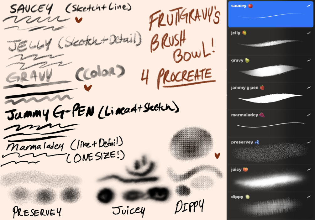 fruit's BRUSH BOWL mini brush-set! (8 procreate brushes)